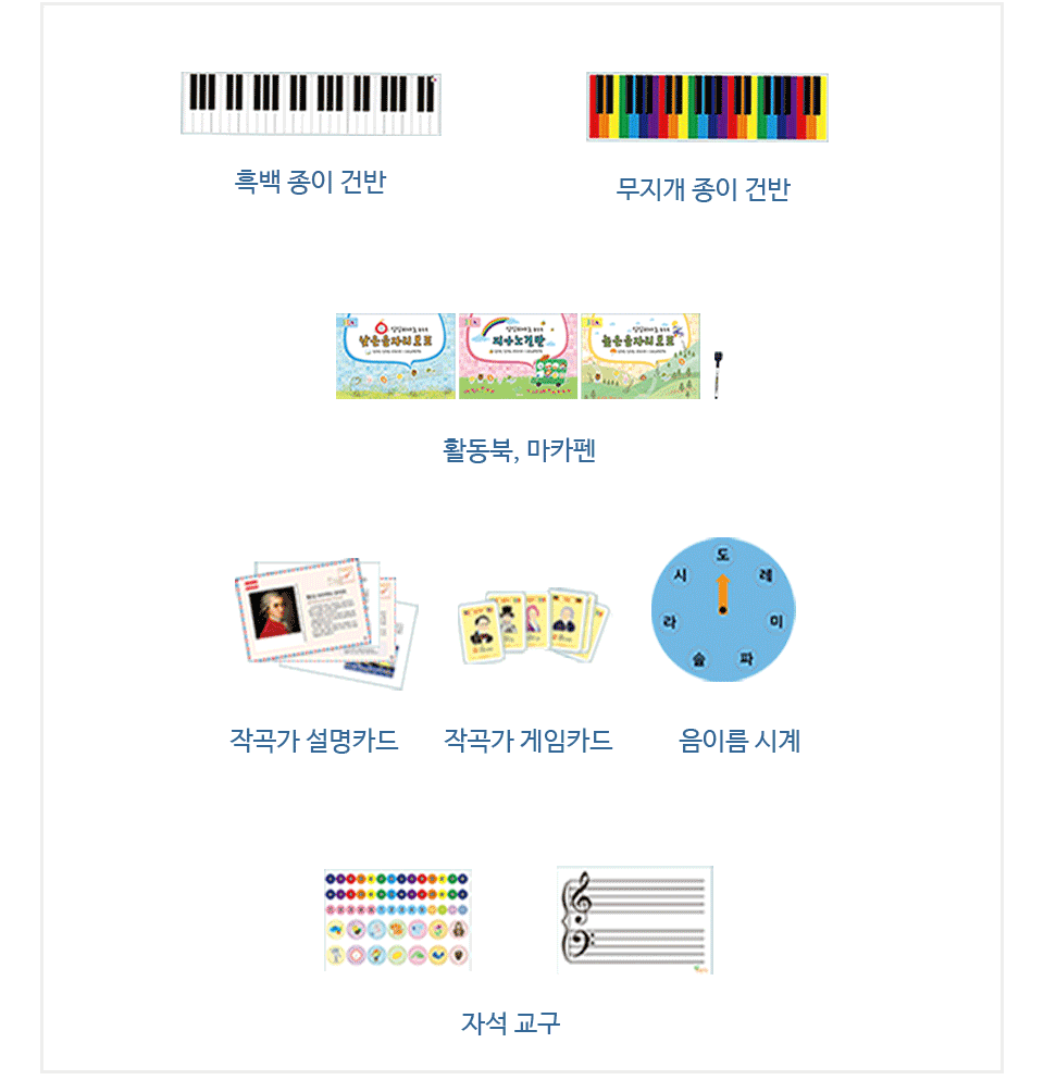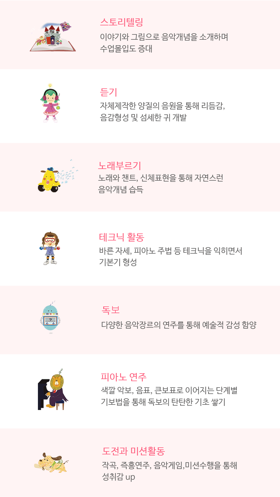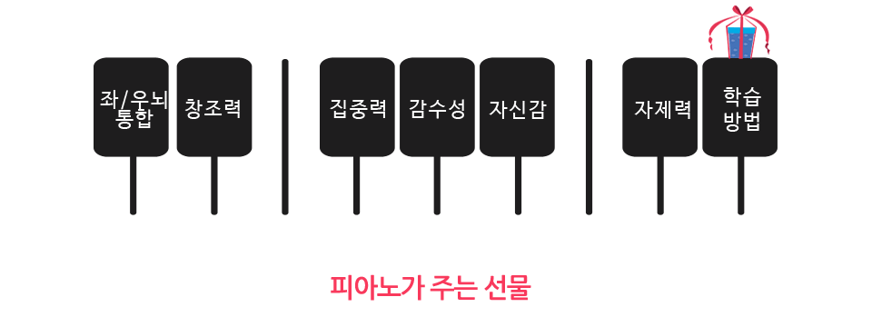 멜로디, 화성, 셈여림, 빠르기, 음색, 형식)를 골고루 경험하면서 자신의 감성을 자유롭게 피아노로