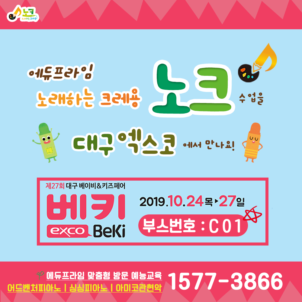 2019 대구 베이비 키즈페어(19.10.24~27,목~일)에 에듀프라임의 대표브랜드인 노래하는 크레용과 싱...